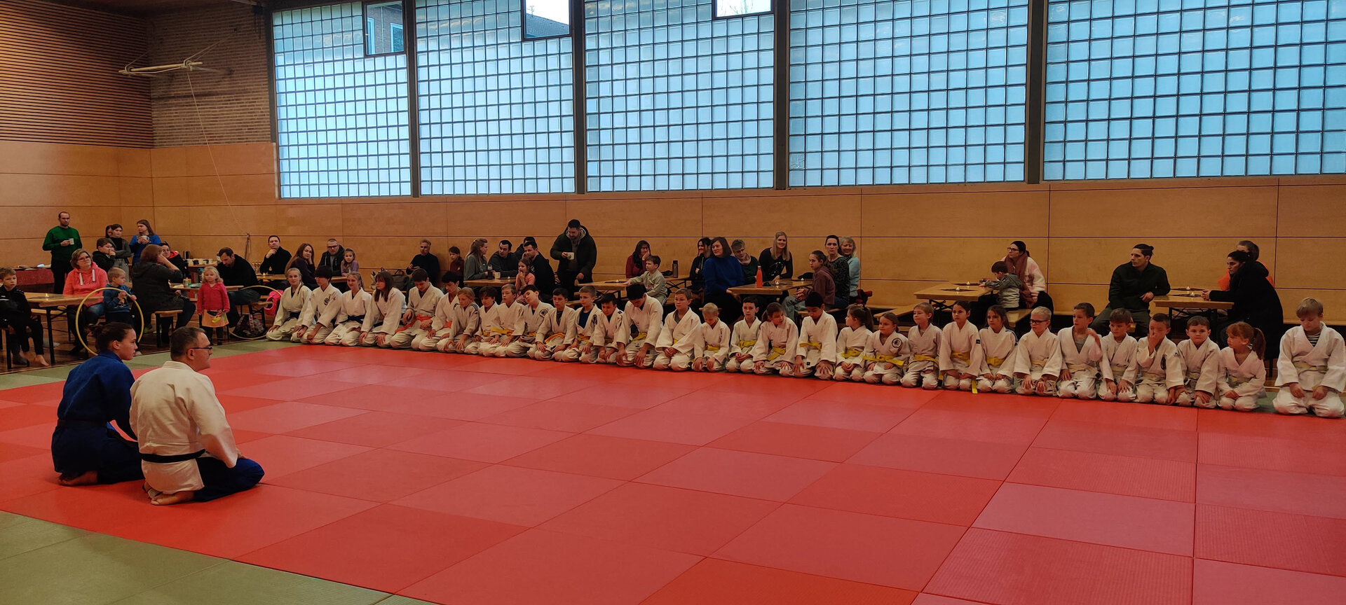 Die Zuschauer – darunter viele stolze Eltern, Großeltern und Vereinsmitglieder – konnten sich von der beeindruckenden Vielfalt an Würfen (Nage-Waza) und Bodentechniken (Katame-Waza) überzeugen. Unsere Trainer begleiteten die Vorführungen mit Erklärungen und zeigten, wie viel harte Arbeit, Disziplin und gegenseitiger Respekt hinter den scheinbar mühelosen Bewegungen steckt.