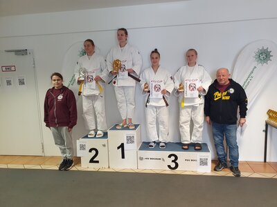 Schnelle Niederlagen ließen die beiden vom Podest nur träumen. Inga und Alea waren etwas besser vorbereitet und standen am Ende jeweils auf Platz 3 Ihrer Gewichtsklasse. Die Qualifikation zur nächsten Ebene war geschafft. Am 01.03 2026 ging es nach Dormagen zur Westdeutschen Meisterschaft U15. Natürlich traten Alea und Inga mutig an, die Konkurrenz aus den anderen Bezirken zeigte den Beiden und auch dem Trainer die Grenzen auf. Mit 16 Kämpferinnen in Ingas Gewichtsklasse und 22 Kämpferinnen in Aleas Gewichtsklasse war das Turnier nach jeweils 2 Niederlagen schon beendet. Die Teilnahme war für die beiden aber eine tolle Erfahrung.